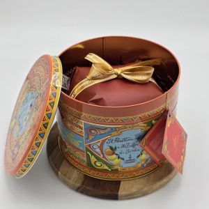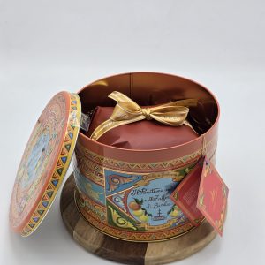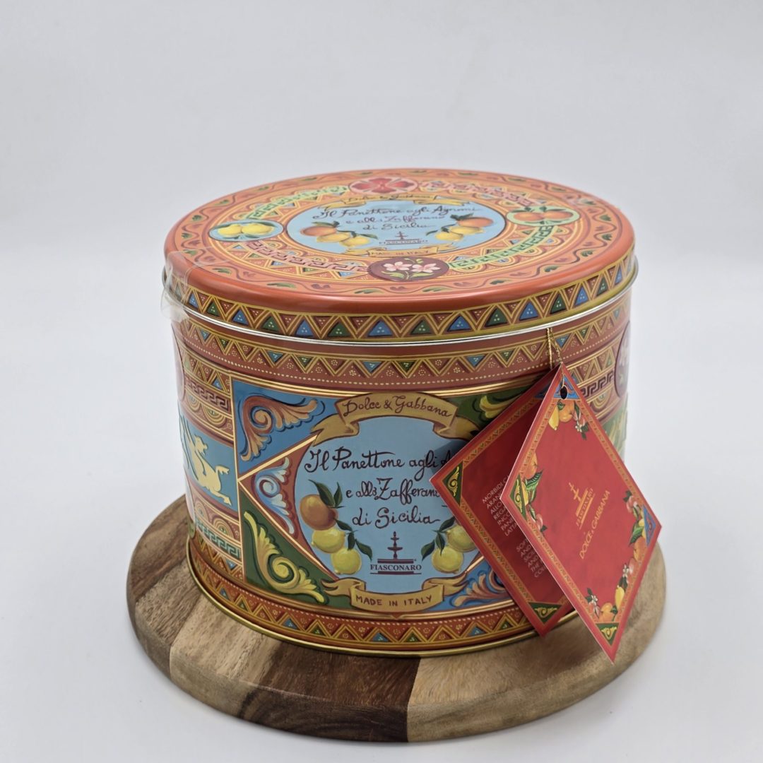 Dolce & Gabbana panettone citrusvruchten en saffraan, is het resultaat van een unieke samenwerking tussen de top panettone maker, Fiasconaro en Dolce &Gabbana. Het resultaat: Een overheerlijke panettone van 500 gram in een prachtig blik.