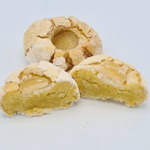 Dolci Baci (zoete kussen) zijn heerlijke Siciliaanse amandel koekjes, die meestal zijn voorzien van een heerlijke vulling. Wanneer je je eerste Dolci Baci hebt geproefd, wil je nooit meer iets anders. Deze amandel koekjes zijn gevuld met een heerlijke geconfijte citroen, wat zorgt voor een mooie intense smaak. Ik ben er gek op. Wil je een andere smaak proberen? Klik hier onze andere smaken.
