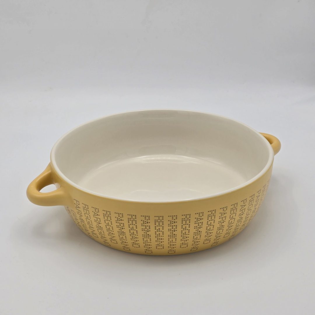 Dit is een sierraad voor op tafel een parmezaanse kaas ovenschaal in de vorm van een Parmiggiano Reggiano kaas. Een must have voor de liefhebber van de Italiaanse keuken.
