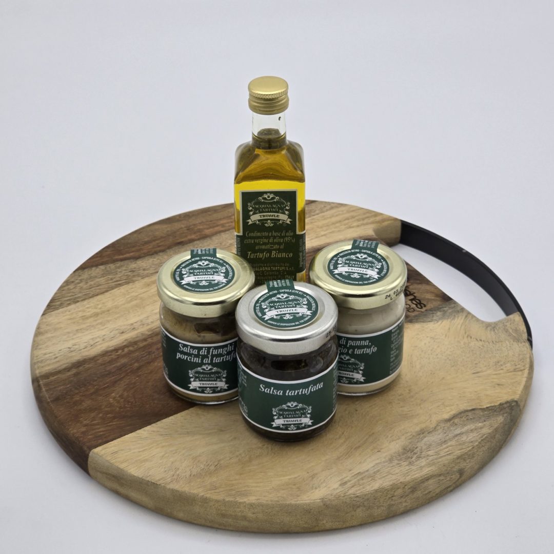 Dit truffel pakket bestaat uit 4 heerlijke truffel producten uit de regio Le Marche. Ideaal om kennis te maken met de truffel of om cadeau te geven.